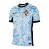 Step onto the pitch with the Portugal Away Soccer Jersey, embodying the spirit and resilience of a proud footballing nation. This striking design features a unique blue and white patterned motif, reminiscent of traditional Portuguese tilework, blending cultural heritage with modern flair. Accented by bold black details on the collar and sleeves, this jersey pays homage to Portugal’s rich history while pushing forward with a fresh, dynamic look.