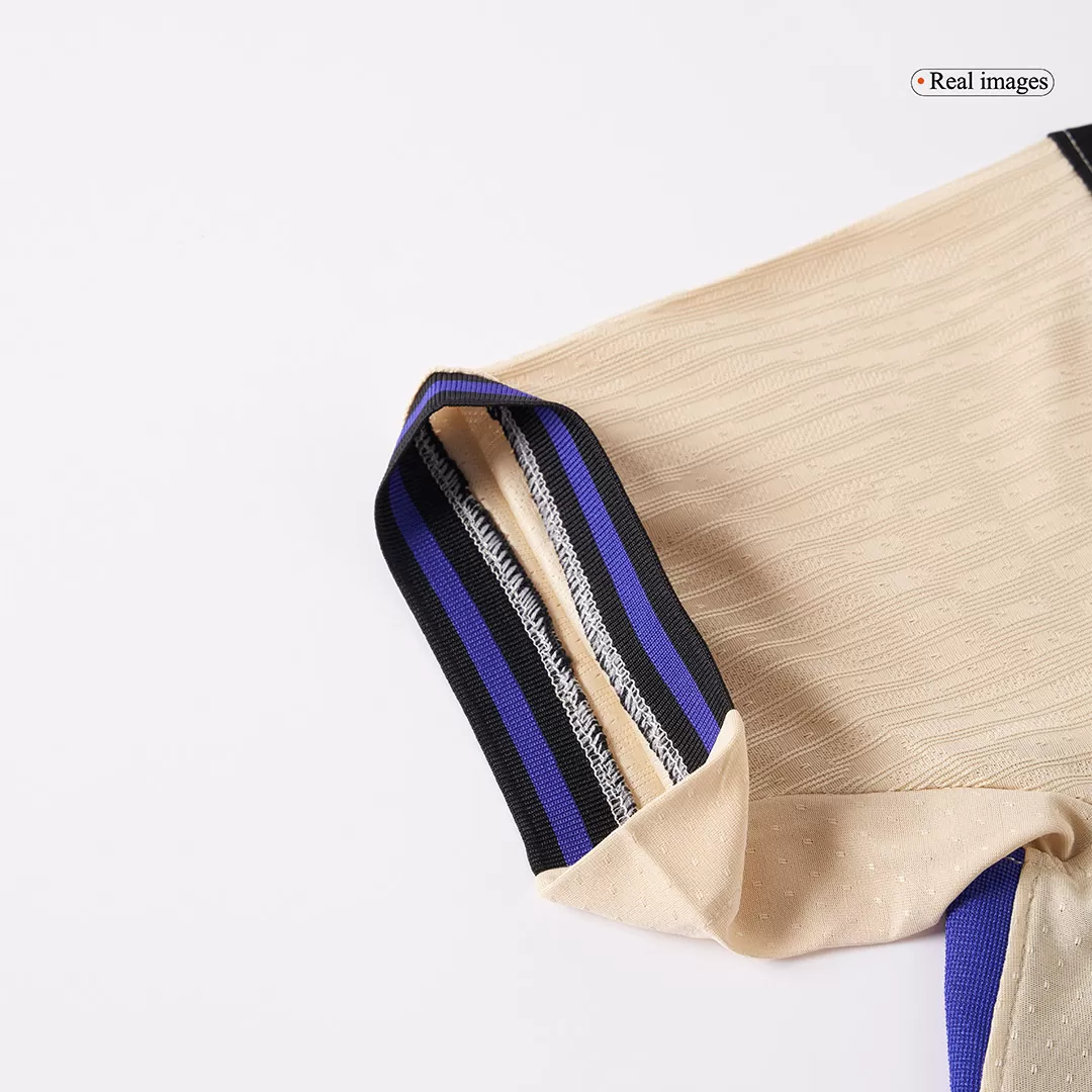 The new Barcelona Away Soccer Jersey 2025/26 x Kobe Bryant comes with premium details that make it truly special. Designed by Nike in the official “Team Gold / Black / Persian Violet” colorway, the kit showcases a subtle snake motif embedded in the Barça crest and is paired with black shorts featuring an Iron Grey Kobe logo and purple side panels. Fans can also enjoy 100% official name and number printing for stars such as Robert Lewandowski, Pedri, Lamine Yamal, Frenkie de Jong, and Gavi, with options available as an authentic jersey, replica jersey, or fan jersey.