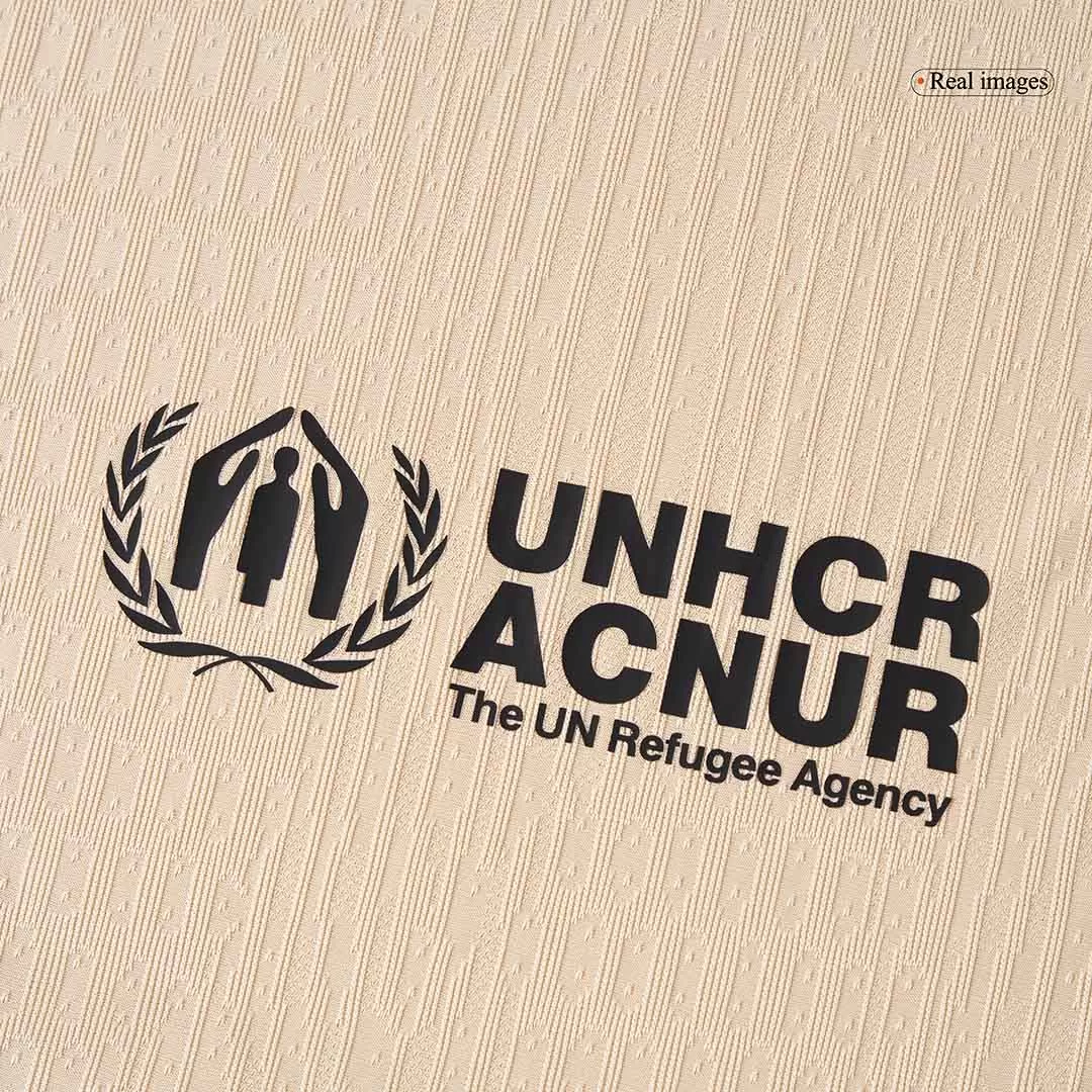 The 25/26 Barcelona jersey features a light yellow-gold base with bold black and Persian violet accents. Its collar and cuffs are directly inspired by the iconic NBA Lakers style, making this kit a unique crossover between football and basketball culture. On the chest, the Barcelona football jersey crest carries a subtle snake-skin pattern, symbolizing Kobe’s legendary “Mamba Mentality.”