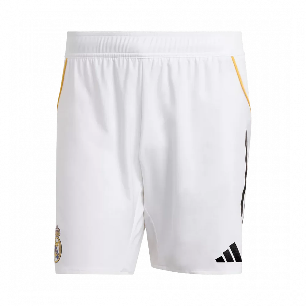 Step onto the pitch with the Real Madrid Home Authentic Soccer Shorts 2025/26, echoing the club’s timeless legacy of excellence. These pristine white shorts are accented with subtle gold trim, symbolizing the royal heritage and championship spirit that define Los Blancos. Designed for both comfort and agility, they feature breathable, lightweight fabric with advanced moisture-wicking construction to keep you cool and dry during intense moments.