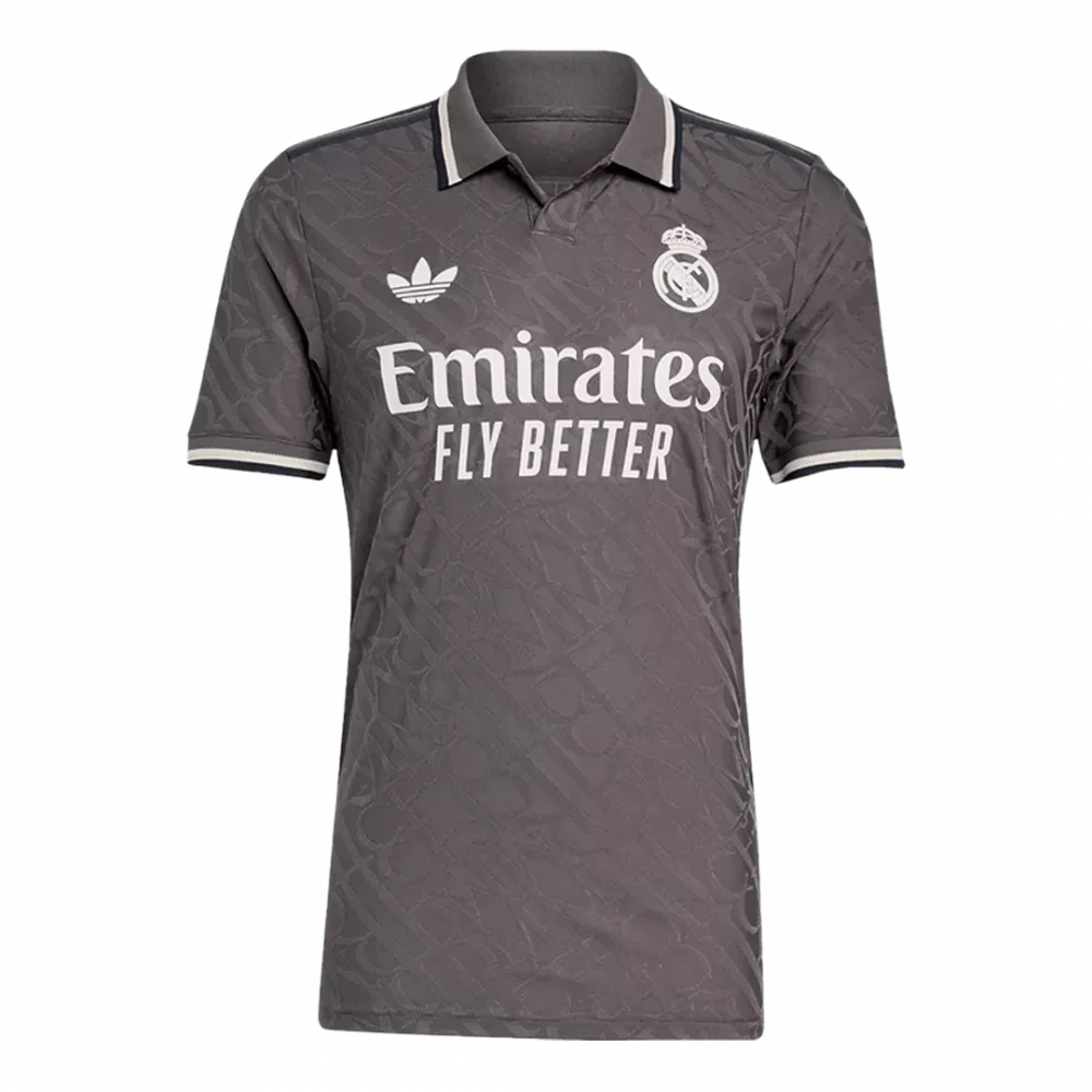 Step onto the pitch with the Real Madrid Third Away Authentic Soccer Jersey, where modern design meets the club’s legendary spirit. This sleek dark gray jersey features subtle all-over patterning that adds depth and texture, complemented by classic white accents on the collar, cuffs, and iconic club crest, echoing the timeless elegance of Los Blancos. A symbol of ambition and resilience, this jersey reflects the winning culture that has defined Real Madrid through decades of footballing triumph.