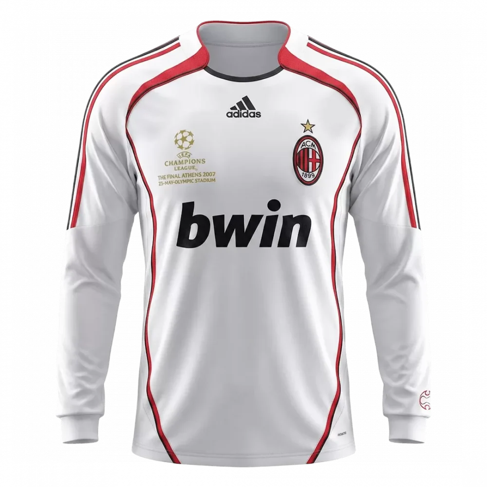 Step back into glory with the Retro AC Milan Away Long Sleeve Jersey from the iconic 2006/07 season, a timeless white canvas accented by bold red and black piping that captures the Rossoneri’s fierce spirit. Commemorating Milan’s unforgettable Champions League triumph in Athens, this jersey is a testament to the club’s rich history and relentless pursuit of excellence. Perfect for fans who want to honor a legendary era with optimal comfort and style.