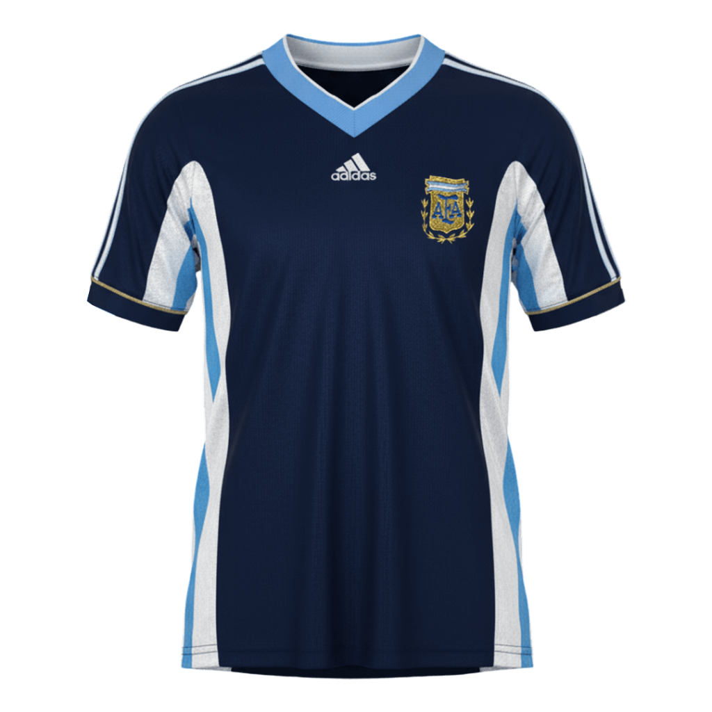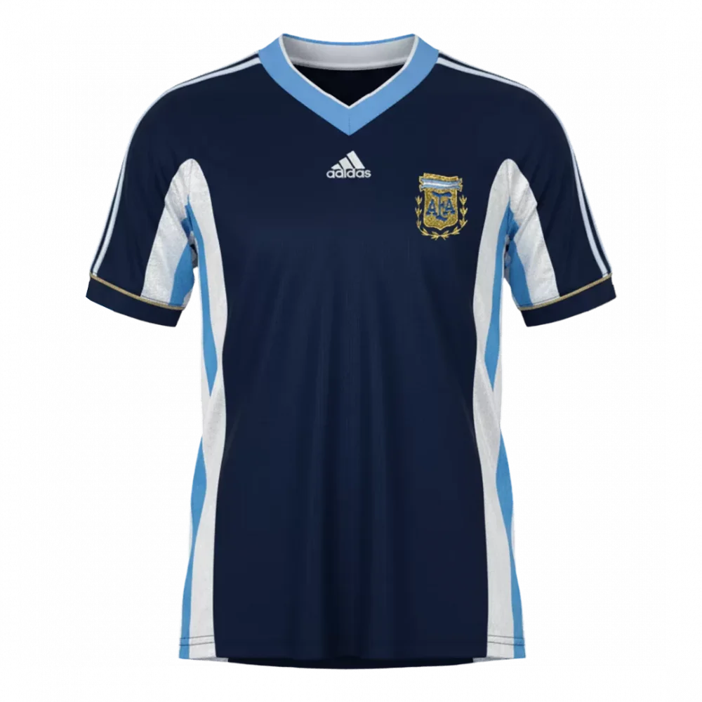 Step onto the pitch with the Retro Soccer Jersey Argentina Away 1998, a classic tribute to one of the nation’s most memorable football eras. Featuring a bold navy base complemented by crisp white and sky blue accents, this jersey echoes Argentina’s distinctive away colors with a clean, timeless V-neck design and intricate detailing around the sleeves and sides. Pay homage to the legacy of Argentine football while enjoying superior comfort and performance through breathable, moisture-wicking fabric that keeps you cool and light during every match.