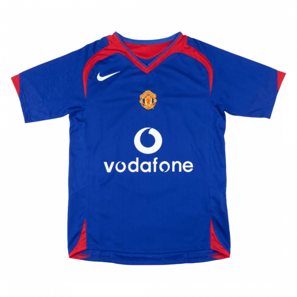 Step back in time with the Retro Soccer Jersey Manchester United Away 2005/06, featuring a striking royal blue base accented by bold red details on the shoulders, sleeves, and sides. This classic design pays tribute to a memorable era for the club, showcasing the iconic crest and sponsorship that defined United’s away battles. Crafted from breathable, lightweight fabric with advanced moisture-wicking properties, it ensures comfort and performance whether you’re on the pitch or cheering from the stands.