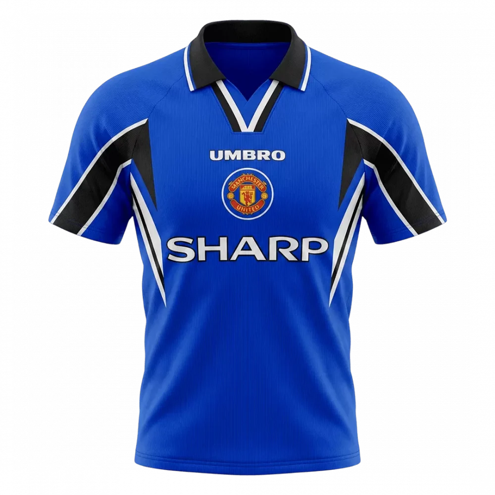 Step back into one of Manchester United’s classic eras with the Retro 1996/97 Third Away Jersey. Featuring a bold royal blue base accented by striking black and white angular patterns, this design stands out with its vintage collar and authentic club crest, celebrating a proud chapter in Red Devils history. Crafted with breathable, lightweight fabric and advanced moisture-wicking properties, it delivers both nostalgic style and all-day comfort.