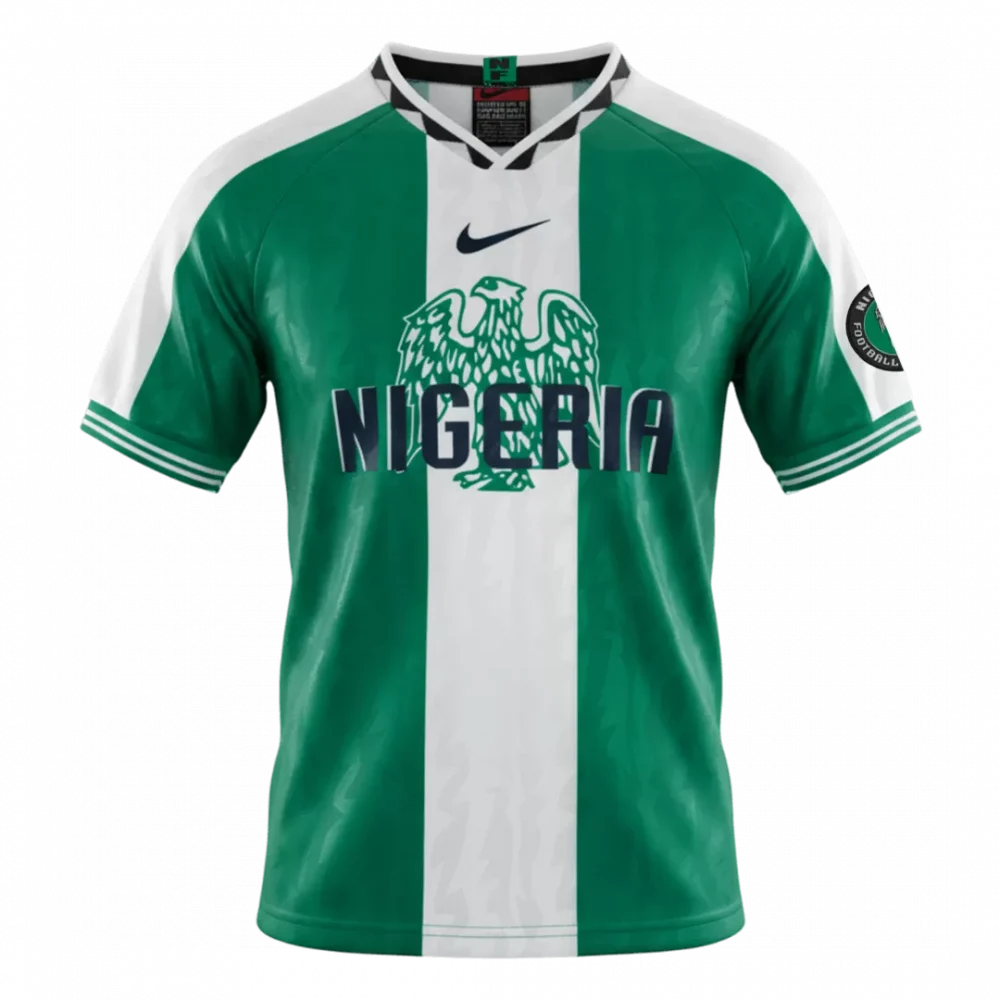 • Showcases authentic 1996 home colors with a distinctive eagle crest and bold ‘NIGERIA’ lettering