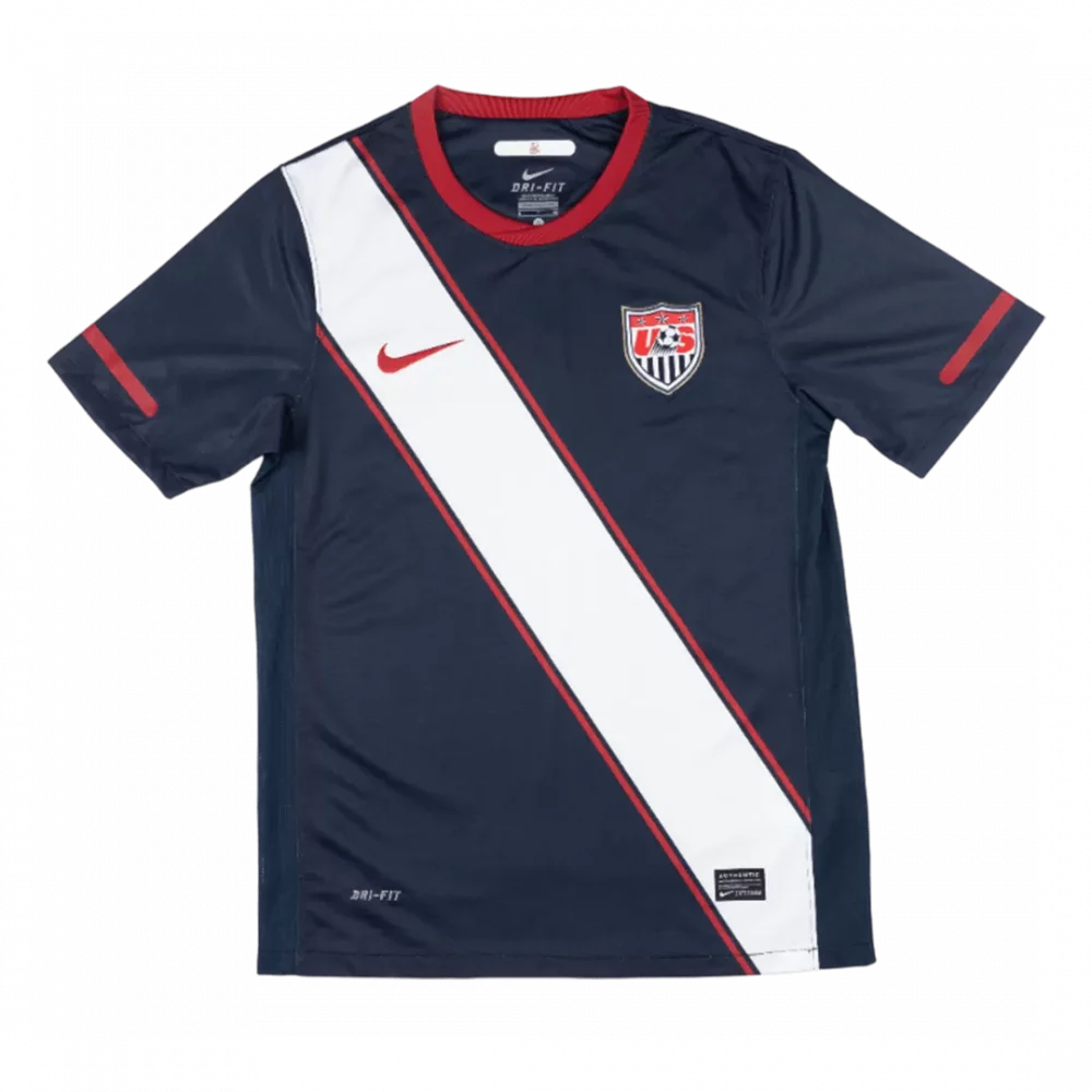 Step back to the unforgettable 2010 USA Away Kit, where classic navy blue takes center stage with a bold white diagonal sash outlined in red, symbolizing strength and unity on the pitch. This jersey honors a proud chapter in American soccer history, worn during World Cup battles that inspired a nation. Crafted from lightweight, breathable fabric with advanced moisture-wicking properties, it keeps you cool and comfortable whether playing or cheering from the stands.