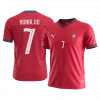 Step into the spirit of Portugal with the 2025 Away Long Sleeve Soccer Jersey, proudly bearing Ronaldo’s iconic #7. Featuring a clean white base accented by dynamic wave-like patterns in subtle red and green hues, this jersey pays homage to Portugal’s national colors and the passionate energy of its football heritage. Designed for peak performance, it combines breathable, lightweight fabric with advanced moisture-wicking properties to keep you cool and comfortable on and off the pitch.