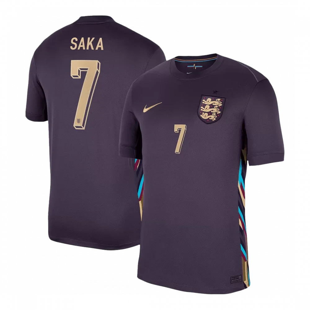 Step into the spirit of England’s rich football heritage with the SAKA #7 England Away Soccer Jersey EURO. Featuring a deep, regal purple base with subtle textural patterns, this jersey is accented by striking gold numbers and the iconic Three Lions crest, symbolizing pride and passion on the international stage. The vibrant side panels add a contemporary twist to this classic design, celebrating the team’s bold journey in European competition.