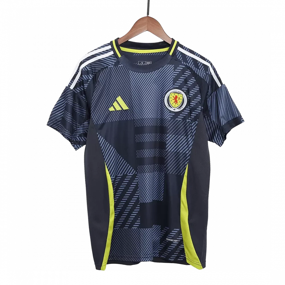 Step into the heart of Scotland with this electrifying Scotland Home Soccer Jersey EURO, featuring a striking blend of deep navy and neon yellow accents that energize the classic tartan-inspired pattern. The bold geometric designs pay homage to Scotland’s rich football heritage and fierce national pride, making it the perfect kit to rally behind the team on their EURO journey.