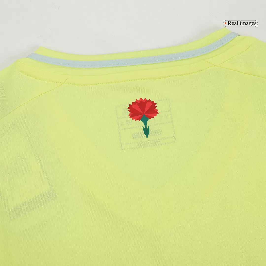 This Spain away soccer jersey EURO 2024 is specially made for football fans. The color of Spain jersey is very bright and beautiful, like yellow flowers blooming in the sun in summer. This Spain jersey features a woven team crest and carnation logo to bring a fresh sparkle to your football fandom. The Spain jersey away EURO 2024 features soft fabric and is designed to keep fans comfortable.
