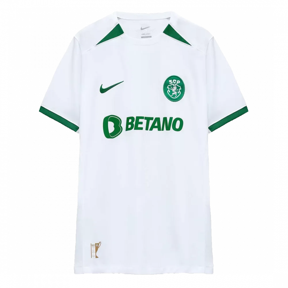 Celebrate decades of Sporting CP pride with the 60th Anniversary Soccer Jersey, a sleek tribute in pristine white accented by deep green trims that reflect the club’s timeless colors. This design honors the rich history and enduring spirit of the Lions, symbolized by the classic crest and subtle commemorative details. Built for performance, it combines breathable and moisture-wicking fabric to keep you cool and comfortable from kick-off to the final whistle.
