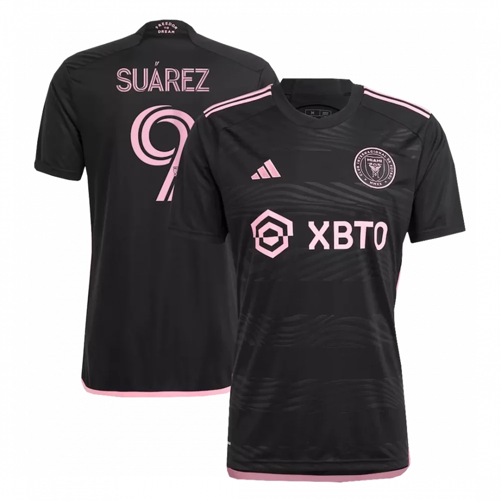 Step into the vibrant spirit of Inter Miami CF with the SUÁREZ #9 Away Soccer Jersey 2023. Featuring a sleek black base with soft pink accents, this jersey captures the club’s bold identity and passion for the game. Subtle wave-like patterns across the fabric pay homage to Miami’s coastal energy, while the player’s name and number stand out with striking contrast. Designed for peak performance, it offers breathable, moisture-wicking fabric that keeps you cool and comfortable whether on the pitch or in the stands.