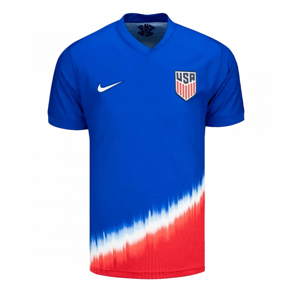 Step onto the pitch with the USA Away Authentic Soccer Jersey Copa America, where bold design meets rich tradition. Featuring a striking royal blue base with a dynamic red and white gradient burst along the hem, this jersey captures the spirit of American pride and the relentless energy of Team USA. The classic crest on the chest honors the country’s soccer legacy, inspiring every player and fan alike.