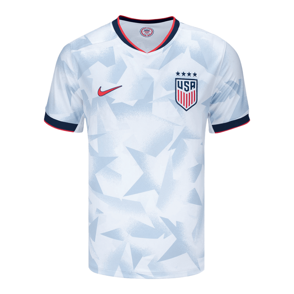 The USWNT Home Soccer Jersey 2025 celebrates the strength and unity of the Women’s National Team with its striking white base and subtle star-inspired pattern echoing national pride. Accented with navy and red trims, this jersey honors the team’s legacy while pushing forward with a clean, modern design that champions determination and excellence on the field.