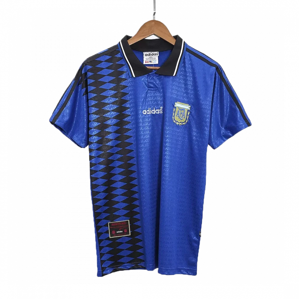 Step back into football history with the Vintage Argentina Away Jersey from 1994. This striking blue kit features a bold black jagged pattern down the left side, paired with a classic collar and subtle embossed details across the fabric, embodying the fierce spirit and style of Argentina’s legendary squad. Perfect for fans who appreciate the culture and heritage of one of the world’s most passionate football nations.
