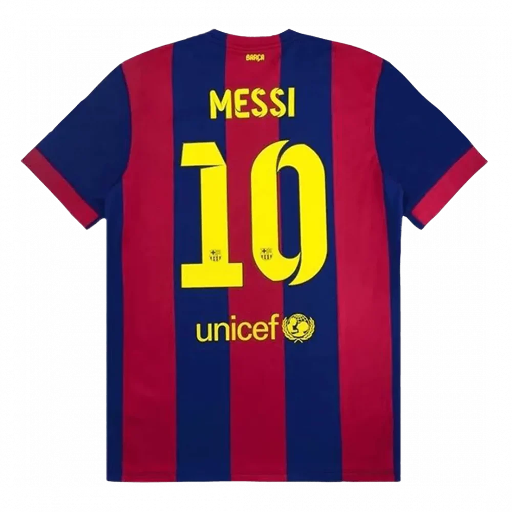 Step into the glory days of FC Barcelona with the Vintage Soccer Jersey featuring Messi’s iconic #10 from the 2014/15 home campaign. This classic design showcases the club’s legendary deep blue and rich garnet stripes, accented with bold yellow details that celebrate one of football’s greatest talents. A true nod to Barça’s proud history of skill, passion, and triumph.