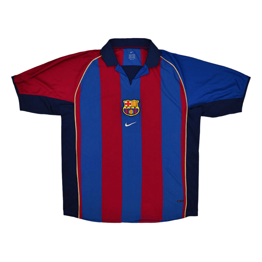 • Classic Barcelona red and blue vertical stripes with gold numbering and name