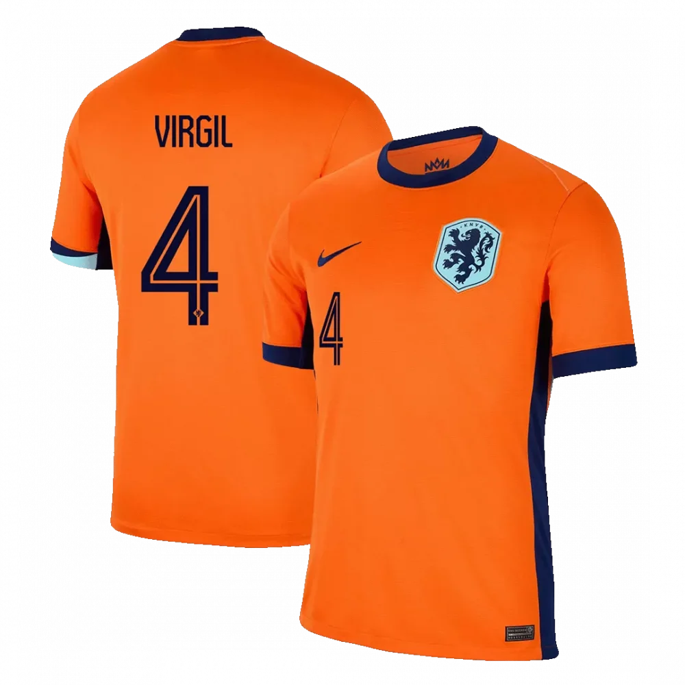 Step onto the pitch with the VIRGIL #4 Netherlands Home Soccer Jersey, a bold tribute to the iconic Dutch Oranje. Featuring the classic vibrant orange base paired with deep navy accents on the cuffs and collar, this jersey echoes the team’s rich history and fierce national pride. The sleek lion crest stands as a powerful emblem of strength and unity, motivating every wearer to deliver their best performance.