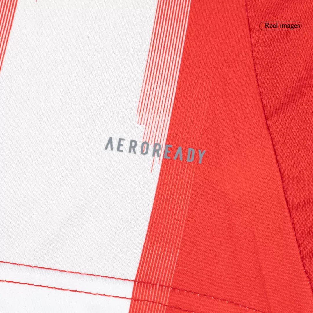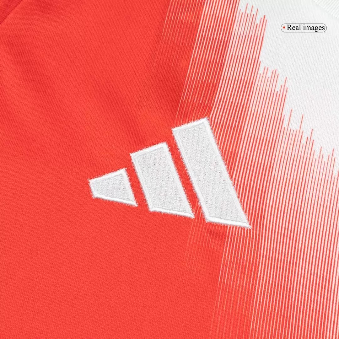 Crafted from the brand-new Adidas Tiro 25 template, this Bayern Munich jersey offers superior comfort and breathability on and off the pitch. The kit features a clean white collar embossed with “FC Bayern München,” adding a unique touch for loyal supporters. Adidas uses white for all logos and details, while the iconic Bayern crest proudly remains in full color. Completing the look, the set includes classic red shorts and socks.