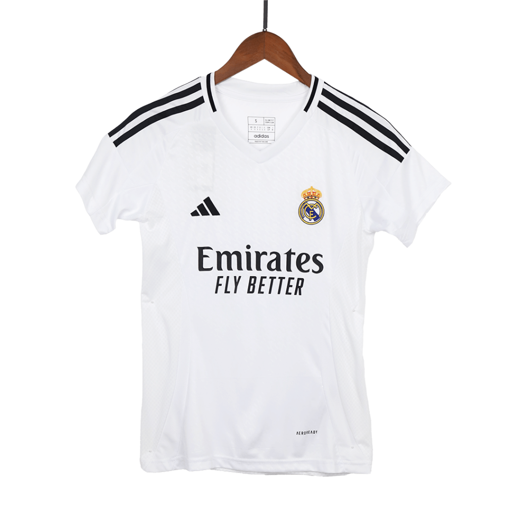 Embrace the legacy of one of football’s most legendary clubs with the Women’s Real Madrid Home Jersey. Featuring the classic all-white design with subtle black accents on the shoulders and collar, this jersey honors Real Madrid’s timeless elegance and winning spirit. The embroidered crest proudly symbolizes decades of excellence and ambition — wear it and join a tradition built on greatness.
